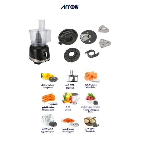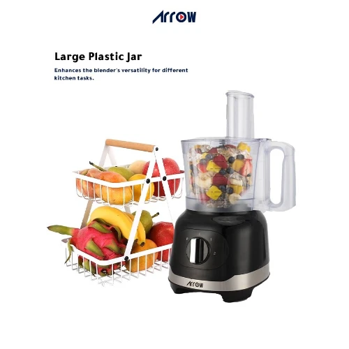 This appliance features a 2.4-liter bowl, making it ideal for a variety of food preparation tasks. Powered by an 800-watt motor, it delivers efficient performance to meet diverse kitchen needs. Designed for 220-240V AC power at 50-60Hz, it is reliable and convenient. Constructed with a durable polypropylene casing, it boasts a stylish black and dark gray finish. Essential safety features, including a secure lid design, ensure safe operation. This appliance offers a range of functions, including chopping, slicing, S-blade processing, blending, and juicing. Adjustable speed control, with P-0-1-2 settings, allows for precise operation tailored to different tasks, making it an excellent addition to any kitchen.