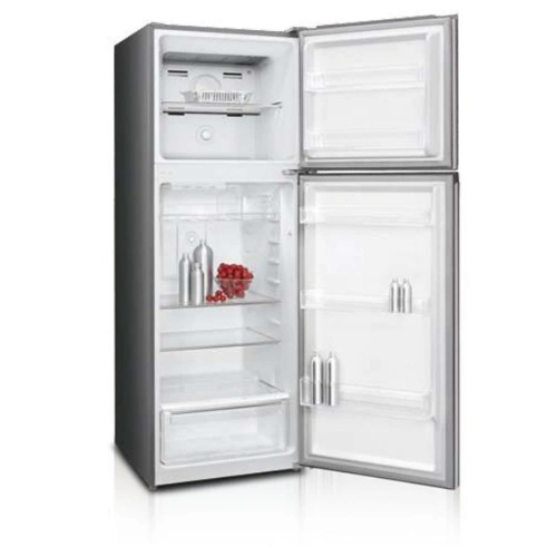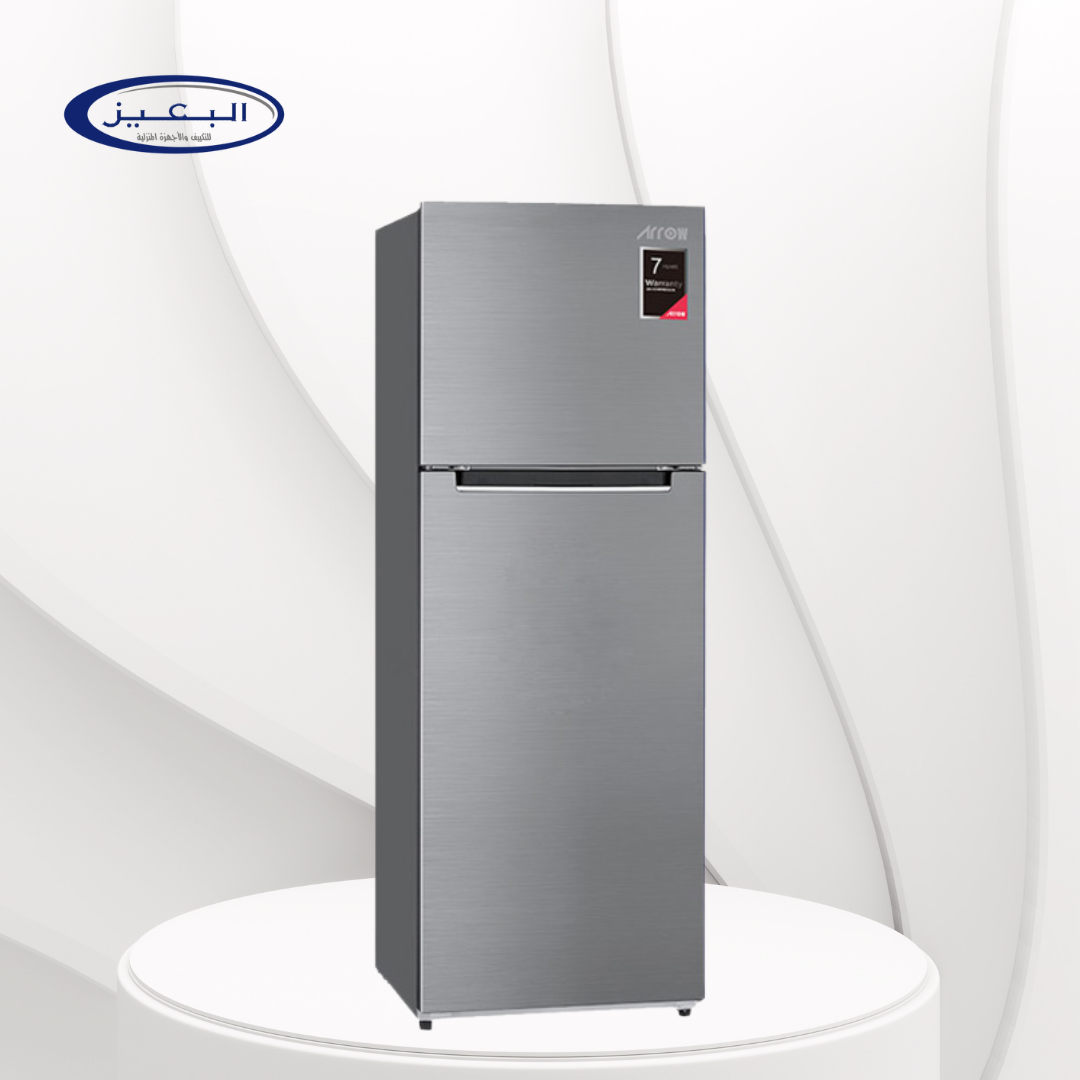 Exceptional Cooling and Storage Capacity. Optimal Space Utilization. Introducing the ARROW RO2-530NFS/520 two-door refrigerator, designed to meet the needs of modern homes. With a generous 334-liter (11.8 cubic feet) capacity, this refrigerator provides ample space for all your groceries, ensuring everything from fresh produce to beverages is stored efficiently. The double-door design allows for easy access and organization, keeping your refrigerator tidy. The elegant silver finish and metal door panel add a touch of sophistication to any kitchen décor. Advanced Cooling Technology. Reliable Performance.