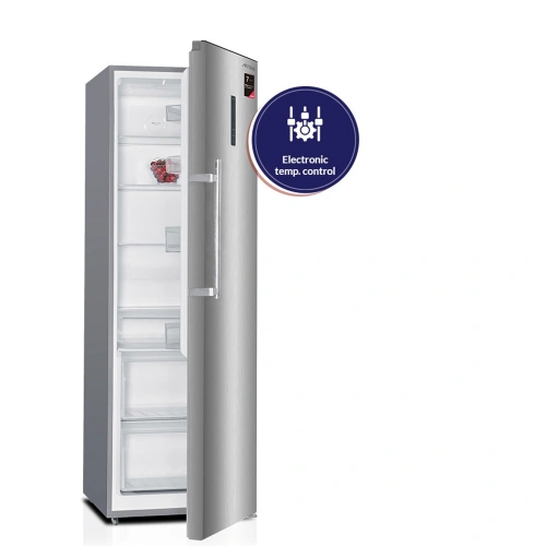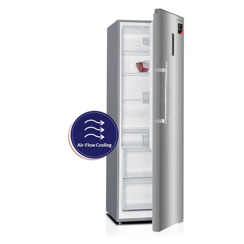 The Arrow single-door upright refrigerator, with a 352-liter capacity, is the perfect solution for keeping food fresh and flavorful for longer thanks to its 360 Cooling technology. The Chill Room shelf maintains the ideal temperature for preserving meat and fish ready to cook without thawing. With the Taste Lock Crisper system and NutriPlus filter, fruits and vegetables stay fresh for up to seven days. Advanced TasteGuard technology eliminates 99.8% of bacteria, ensuring a clean and healthy environment.