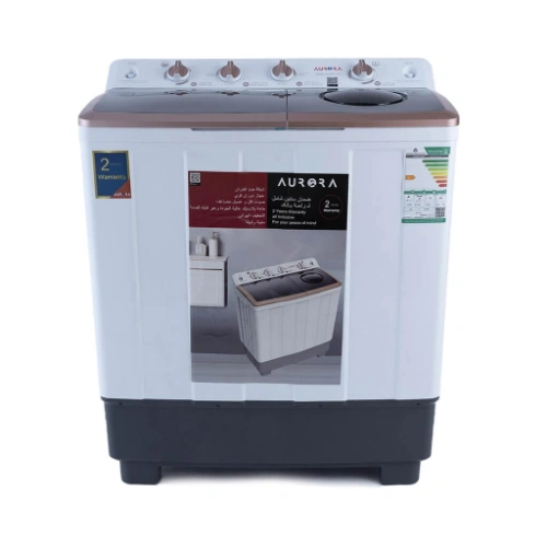 The AURORA twin-tub washing machine offers a generous 10kg wash capacity and a 5.5kg spin capacity, making it ideal for handling larger loads. Its durable plastic body, elegant white finish, and transparent lid provide both style and functionality. The user-friendly ABS control panel, along with a 15-minute wash timer and a 5-minute spin timer, ensures efficient performance. With a powerful 500W wash motor and a 180W spin motor, this washing machine delivers reliable results. Compact and lightweight, it fits comfortably in smaller spaces while providing excellent wash and spin efficiency.
