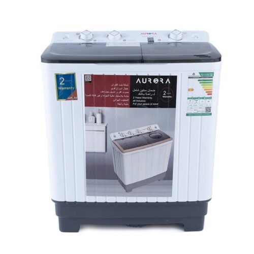 The AURORA AR-06TTH twin-tub washing machine is a compact and efficient laundry solution designed for small families or quick washes. With a 5kg wash capacity and a 4.5kg spin capacity, it offers a balanced combination of washing and drying power. Made of durable plastic with a stylish white finish, this washing machine features an ABS control panel and a transparent lid for easy operation. A 15-minute wash timer and a 5-minute spin timer ensure quick and efficient cleaning, powered by a 400W wash motor and an 180W spin motor. Lightweight and compact, it fits perfectly in tight spaces.