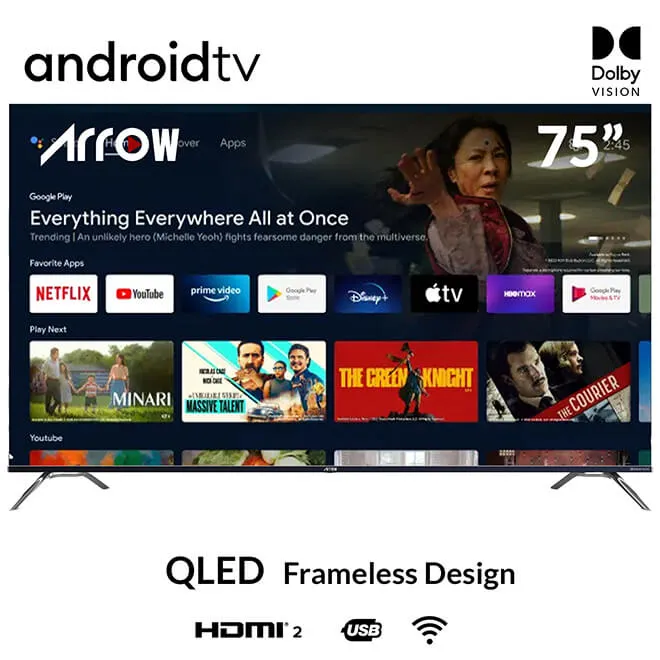 - تقنية QLED 4K: تلفزيون اركيو 75 بوصة يقدم صورة بجودة 4K بفضل تقنية QLED التي توفر ألوانًا زاهية وتفاصيل دقيقة تجعل كل مشهد ينبض بالحياة.